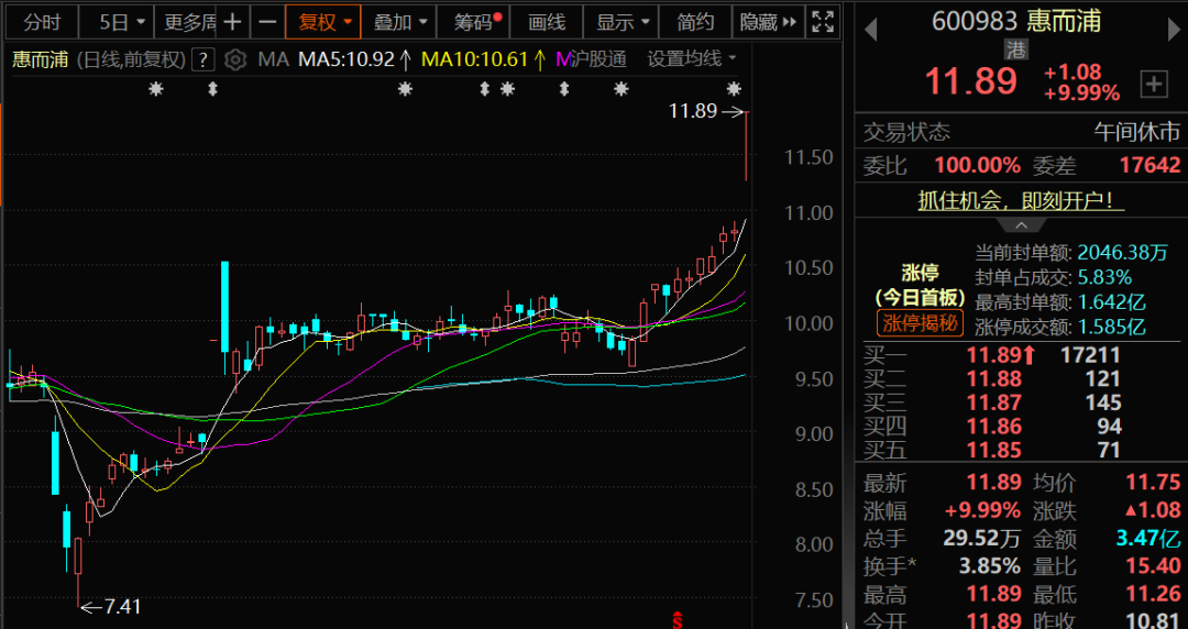 惠而浦同样于上周末公告,预计2025年半年度实现净利润2.05亿元左右,与上年同期相比,将增加1.74亿元左右,同比增加559%左右。惠而浦早间以涨停价开盘,创年内新高。