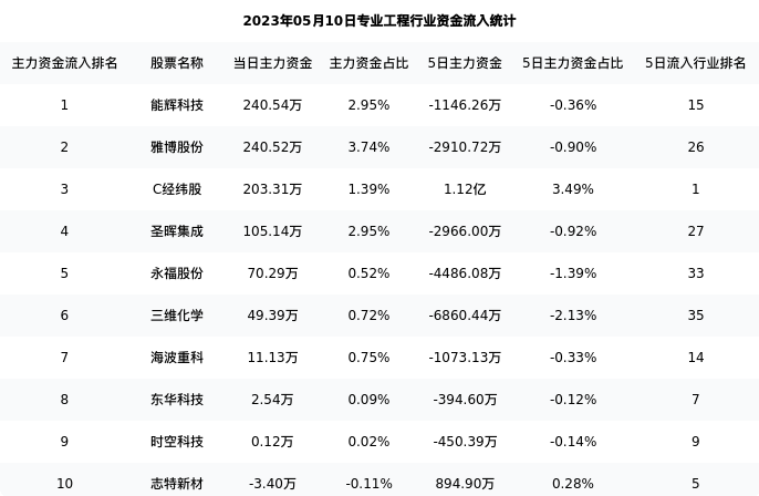下表为今日行业内流入前10股票的信息