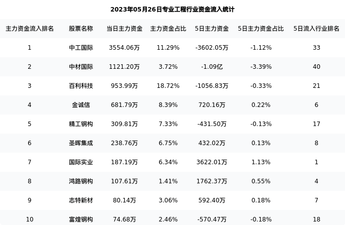 从主力资金流向来看,专业工程行业今日主力资金流入11.54亿元,在所有申万二级行业中排名:107/131。