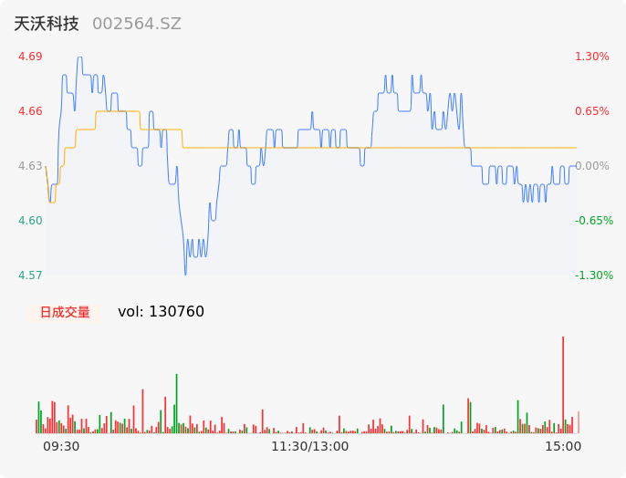 04月26日,天沃科技收报4.63,股价涨幅0.00%,成交金额6061.78万元,换手率1.52%。
