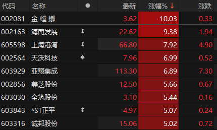 上证报中国证券网讯 12月26日早盘,建筑装饰板块表现活跃。截至9时49分,金螳螂涨停。海南发展涨超9%,上海港湾涨近8%,天沃科技、亚翔集成涨逾6%。