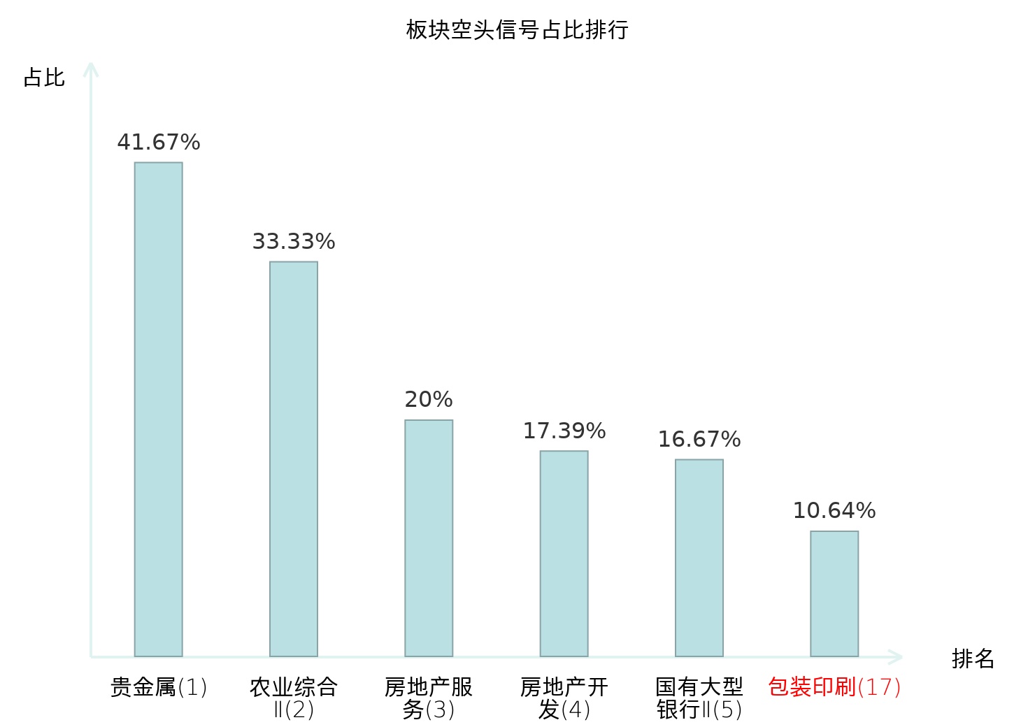 从主力宝信号数据分析,顺灏股份所属的包装印刷板块中共5只股票发出主力空头信号,主力空头信号占比在全行业中排名第17位,较昨日上升112位。排名上升表明主力对于该板块的卖出意愿增强。全市场所有行业板块中,贵金属板块的主力空头信号占比最高,位居第一;包装印刷板块名次提升最快,较昨日上升112位。这些变动揭示了主力资金在不同行业间的偏好变化,为投资者提供了市场动态和潜在风险的重要参考。