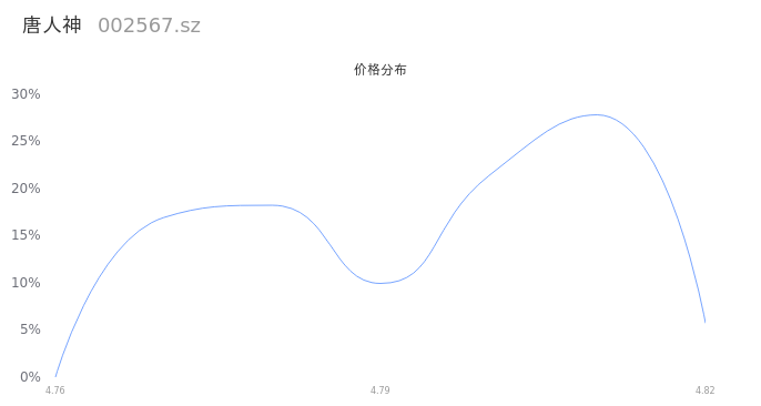然后我们来看下当日成交的价格分布。经过分析发现,该股票当日成交价格波动低于10个最小波动价位,由于可以参考的样本量非常少,价格分布分析的结果不具有指导意义,下图仅供参考。