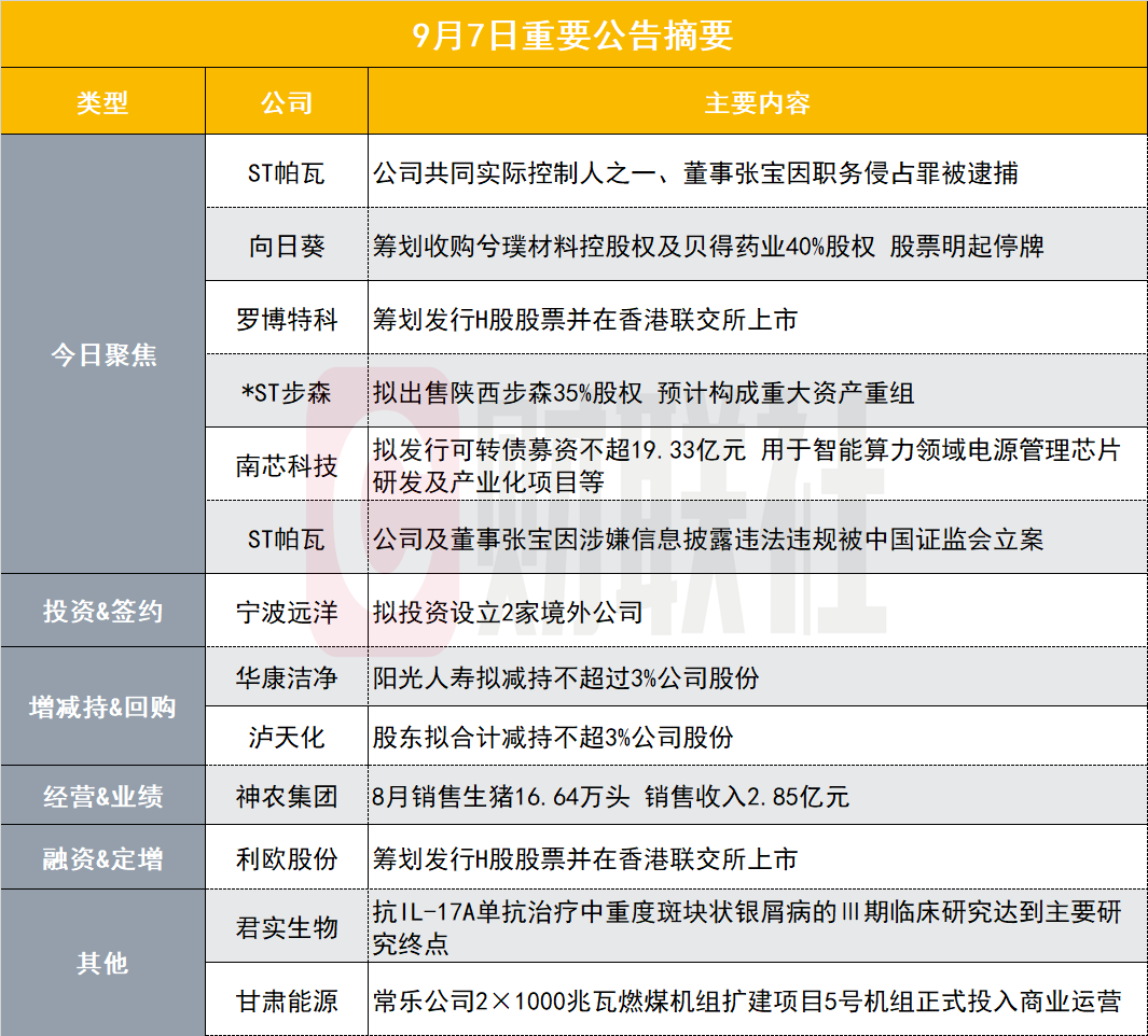 向日葵(300111.SZ)公告称,公司正在筹划以发行股份及/或支付现金的方式收购漳州兮璞材料科技有限公司控股权及浙江贝得药业有限公司40%股权,同时拟募集配套资金。本次交易预计构成重大资产重组,不会导致公司实际控制人变更。公司股票将于2025年9月8日起停牌,预计在不超过10个交易日的时间内披露本次交易方案。