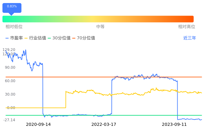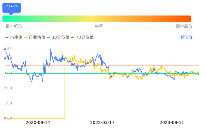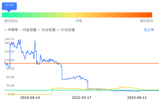2023年09月11日,贝因美上涨0.95%收于4.26,今日成交金额4097.41万元。下文将从市盈率PETTM、市净率PB、市现率3个角度去分析公司估值情况。