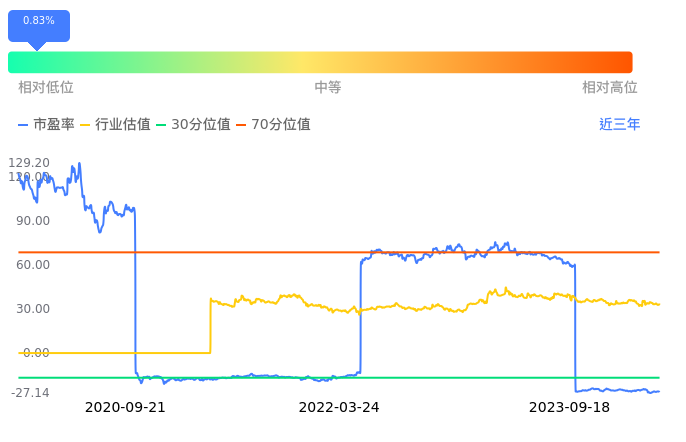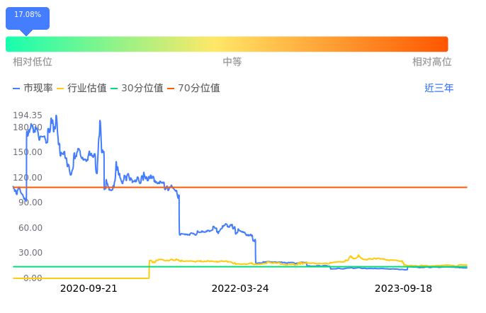 2023年09月19日,贝因美下跌0.70%收于4.26,今日成交金额3320.71万元。下文将从市盈率PETTM、市净率PB、市现率3个角度去分析公司估值情况。