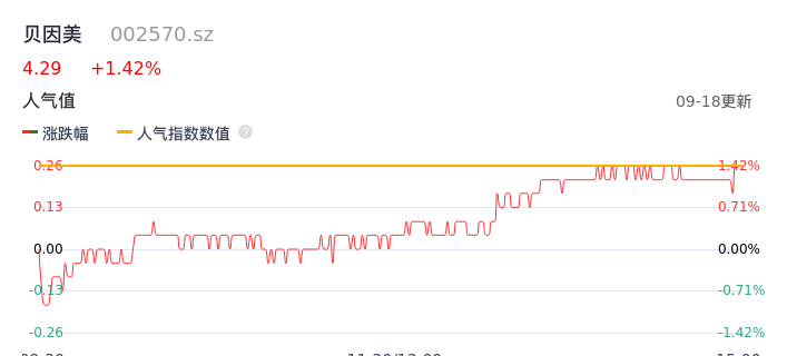 09月18日,贝因美收报4.29,股价涨幅1.42%,成交金额4743.52万元,换手率1.03%。