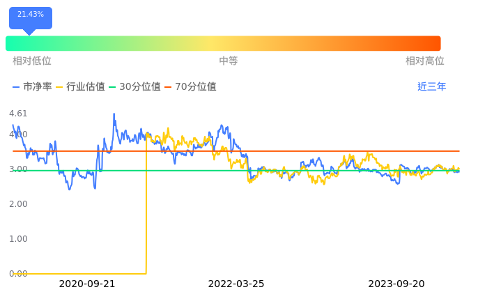 贝因美当前市净率PB为2.93,在所属的饮料乳品中,市净率PB排13,前五名分别为三元股份市净率1.50、维维股份市净率1.62、庄园牧场市净率1.63、光明乳业市净率1.76、天润乳业市净率1.82。贝因美当前市净率PB为2.93,超过近3年21.43%的历史数据。