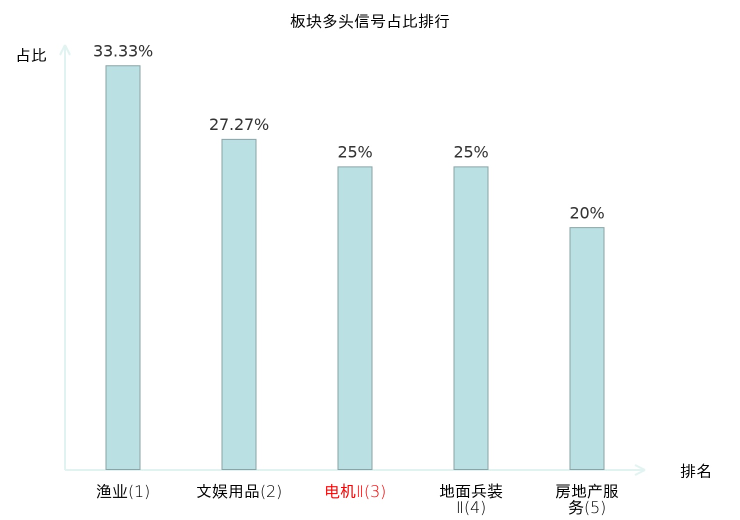 全市场所有行业板块中主力多头信号占比排名中,渔业板块位居第一。渔业板块名次提升最快,较昨日上升122位。