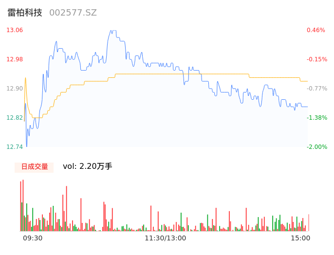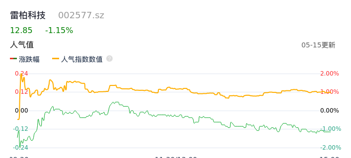 05月15日,雷柏科技收报12.85,股价涨幅-1.15%,成交金额2843.04万元,换手率0.78%。