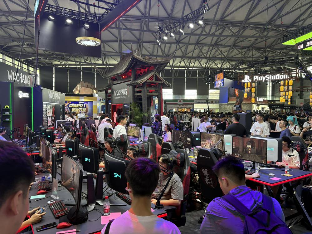上午9时许,财联社记者抵达展馆时,不少厂商还未开放排队通道,展台就已聚集了大批玩家。没过多久,潮水般的人流伴随着欢呼声、音乐声充斥在各个展馆。