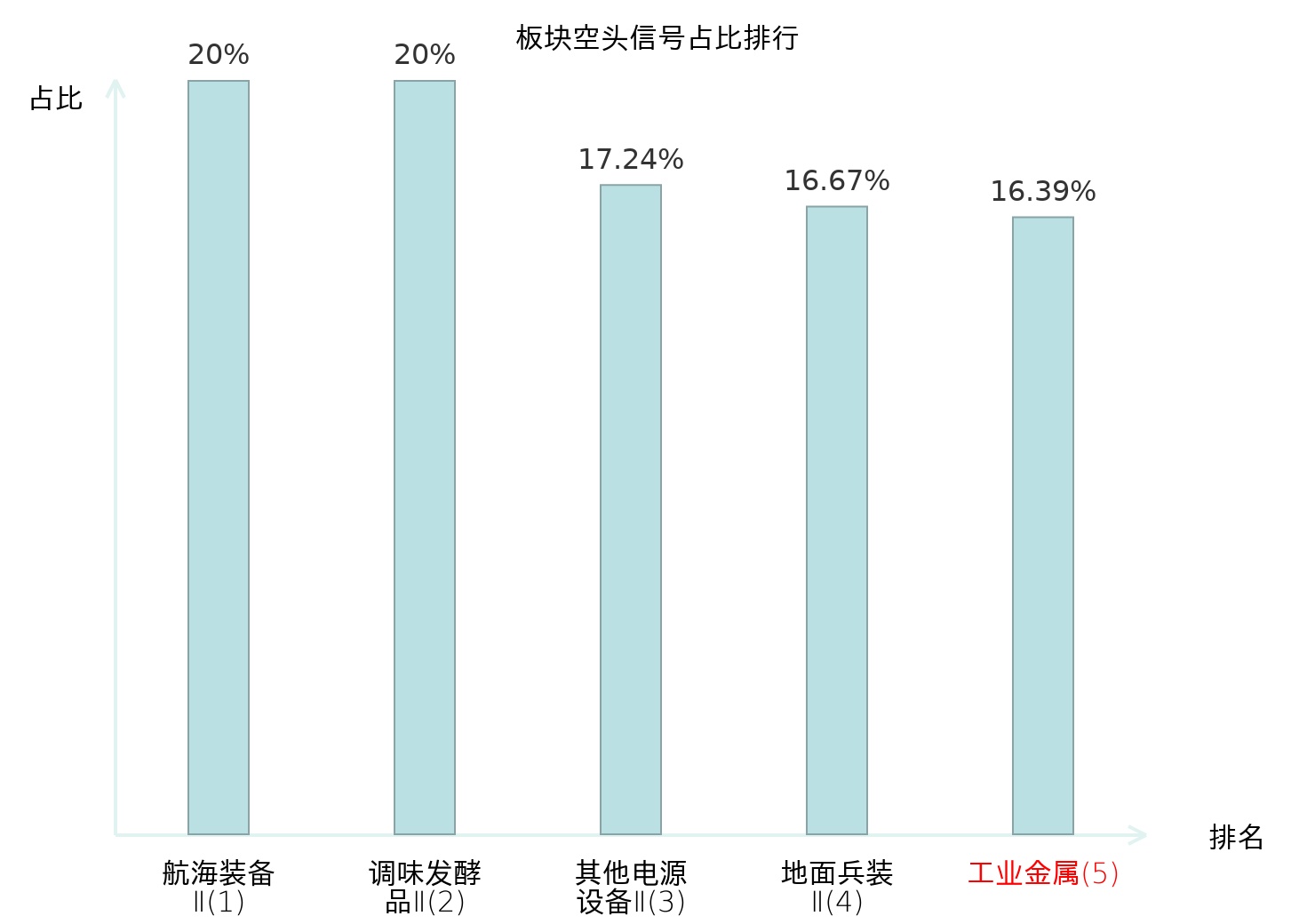 全市场所有行业板块中主力空头信号占比排名中,航海装备Ⅱ板块位居第一。调味发酵品Ⅱ板块名次提升最快,较昨日上升122位。