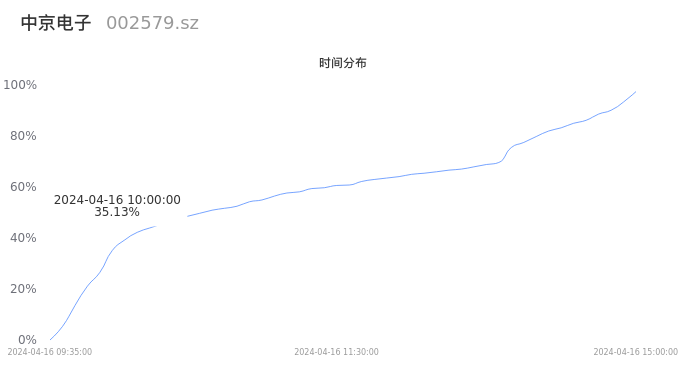 002579中京电子2024年04月16日成交20.30万手,成交金额1.34亿元,相较昨日放量2.31万手,换手率3.49%,成交清淡。