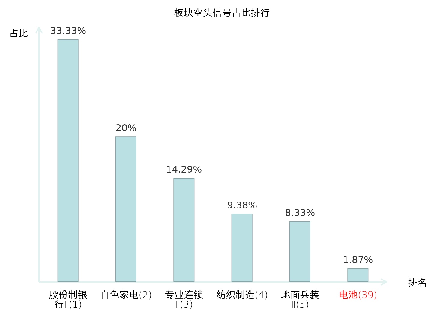 从主力宝信号数据分析,圣阳股份所属的电池板块中共2只股票发出主力空头信号,主力空头信号占比在全行业中排名第39位,较昨日下降15位;排名越高说明主力当日卖出意愿越强;全市场所有行业板块中主力空头信号占比排名中,股份制银行Ⅱ板块位居第一;塑料板块名次提升最快,较昨日上升111位;这些变动反映了不同行业间主力资金行为的差异,为投资者评估市场压力分布及潜在风险提供了客观依据。