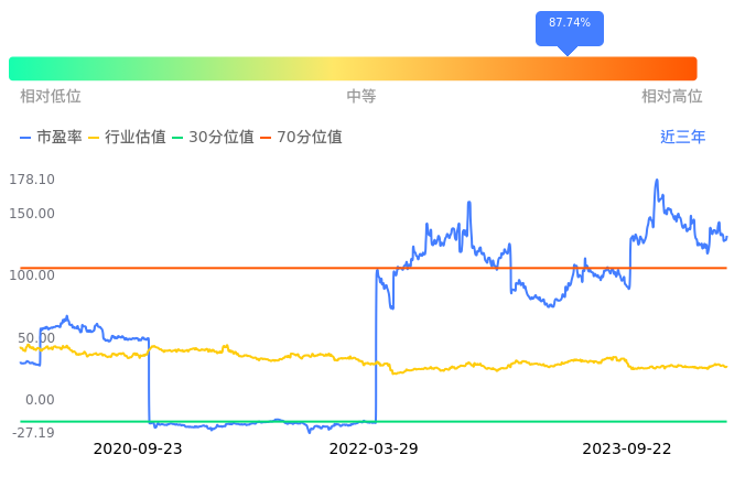 2023年09月22日,奥拓电子上涨2.71%收于6.81,今日成交金额1.26亿元。下文将从市盈率PETTM、市净率PB、市现率3个角度去分析公司估值情况。