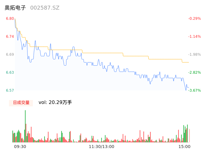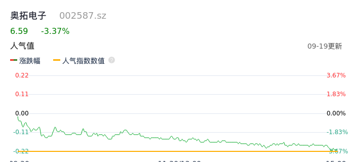 09月19日,奥拓电子收报6.59,股价涨幅-3.37%,成交金额1.35亿元,换手率3.95%。