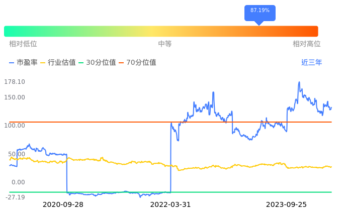2023年09月25日,奥拓电子下跌0.44%收于6.78,今日成交金额1.09亿元。下文将从市盈率PETTM、市净率PB、市现率3个角度去分析公司估值情况。