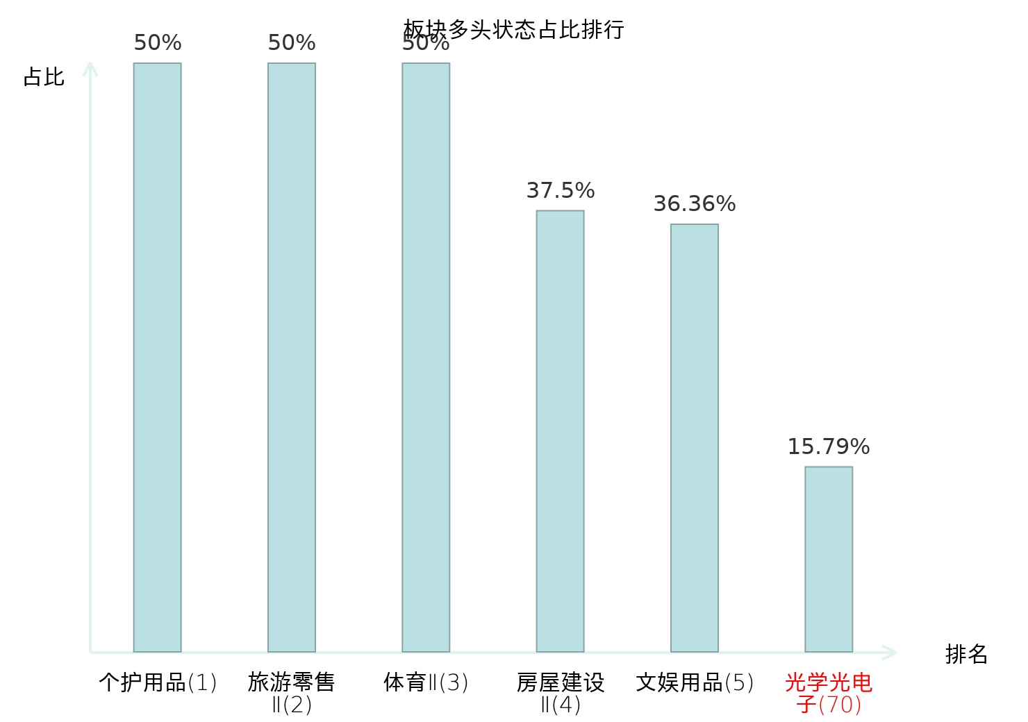 全市场所有行业板块中主力多头状态占比排名中,个护用品板块位居第一。焦炭Ⅱ板块名次提升最快,较昨日上升68位。