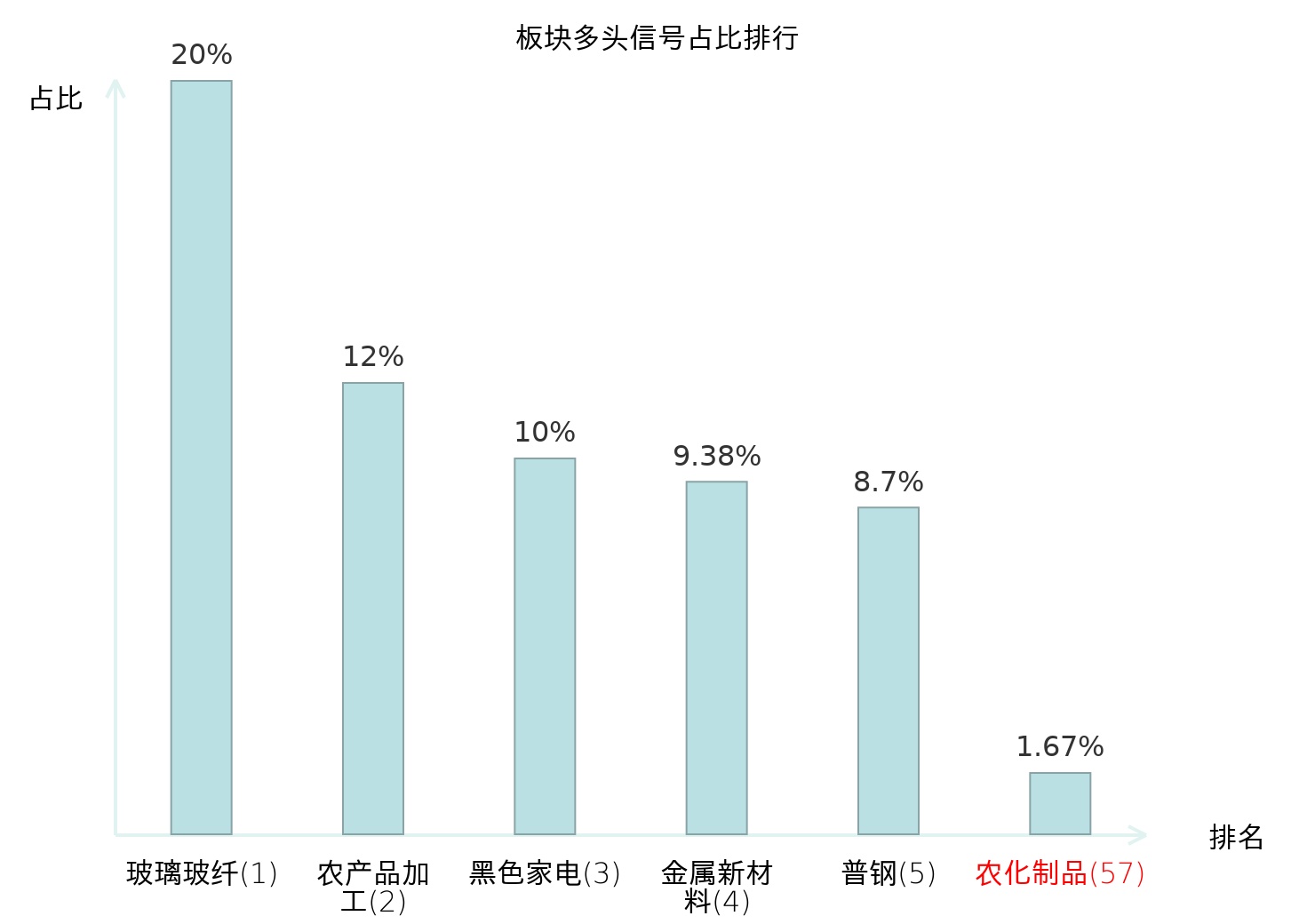 全市场所有行业板块中主力多头信号占比排名中,玻璃玻纤板块位居第一。玻璃玻纤板块名次提升最快,较昨日上升108位。