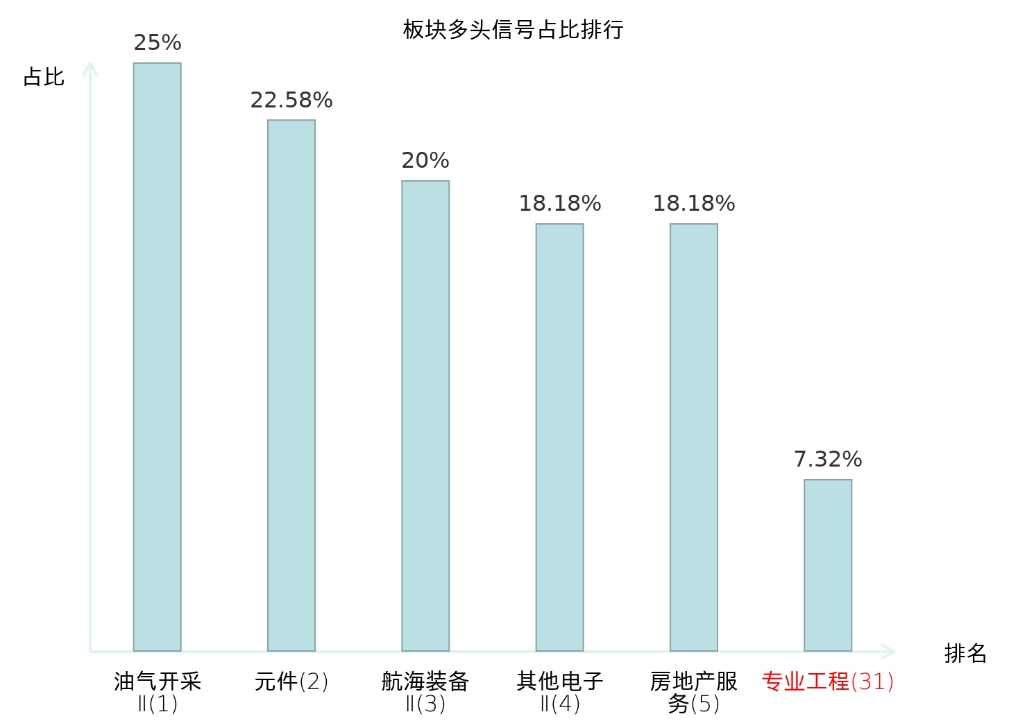 全市场所有行业板块中主力多头信号占比排名中,油气开采Ⅱ板块位居第一。油气开采Ⅱ板块名次提升最快,较昨日上升125位。