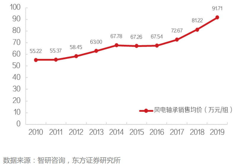 图:2010至2019中国风电轴承销售均价 |