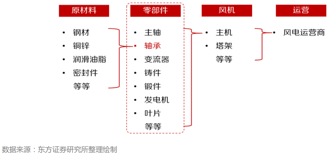 风电行业核心产业链为上游原材料,中游风机零部件生产制造与风机整机总装以及下游风电场投资运营。据华轴网总结,由于风机需面临高低温差、环境湿热、沙尘及潜在海风腐蚀等恶劣应用环境,同时又有极高的运行可靠性与寿命要求,所以相比一般通用轴承,风电轴承的生产工艺上有着显著的技术壁垒。