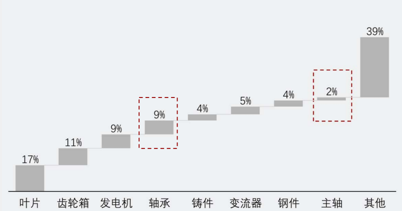 图:2020年风力发电机零部件成本占比 |