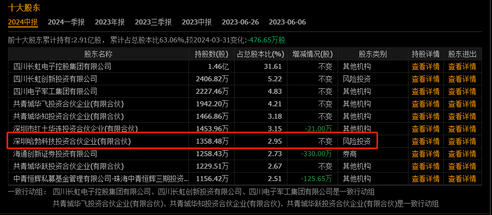 2024年中报显示,华为旗下深圳哈勃科技创业投资有限公司持股2.95%。