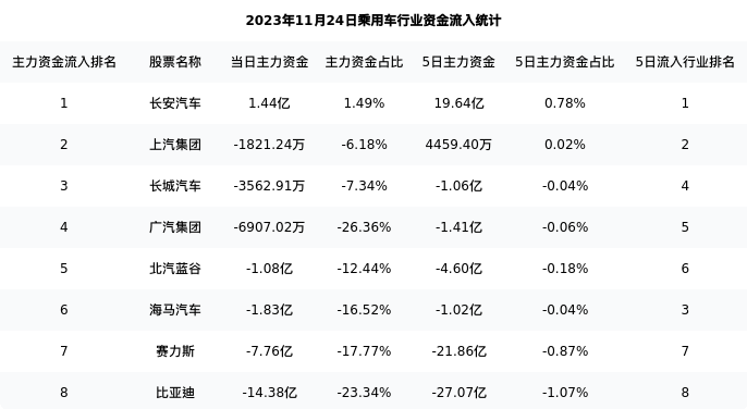 比亚迪今日净流出14.38亿元,主力占比23.34%,在行业内排名:8/8;5日净流出27.07亿元,主力占比1.07%,在行业内排名:8/8。