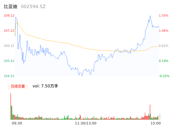 04月24日,比亚迪收报207.42,股价涨幅1.16%,成交金额15.47亿元,换手率0.64%。