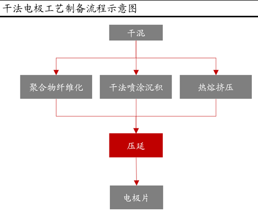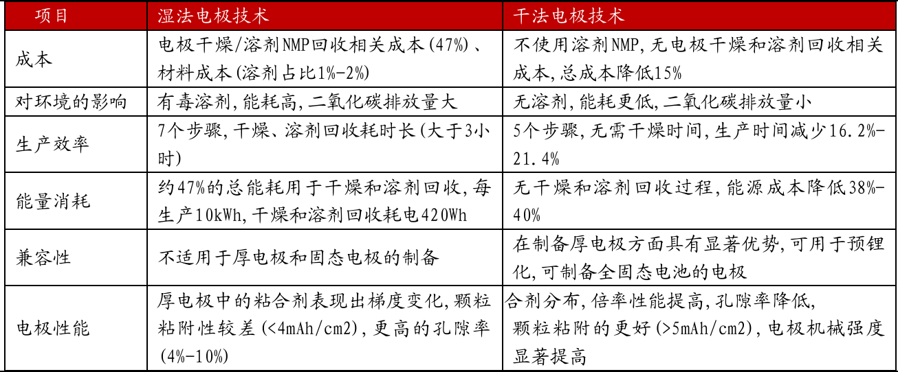 传统的湿法电极工艺:通常把活性材料(正极或负极)、导电剂以及粘结剂按一定比例在溶剂中混合得到电极浆料。然后把电极浆料涂覆在集流体(铜箔或者铝箔)上经过烘干得到电极。在湿法电极的浆料制备过程中会用到大量有机溶剂NMP,后续还需要做粉料的烘干以及溶剂的回收。