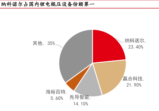 纳克诺尔:纳科诺尔是国内锂电辊压设备龙一,市场份额超20%。纳科诺尔成立于2000年,于2023年11月在北交所上市,公司主要从事高精度辊压设备的研发、生产和销售。2022年公司占国内锂电辊压设备市场份额23.4%,位列第一。公司成立至今一直致力于为电池生产企业提供高精度、高稳定性、操控便捷的电池极片轧制成套设备,主要客户包括宁德时代、比亚迪、海辰储能、武汉楚能、亿纬锂能、远景动力、松下、日立等国内外知名电池生产企业及电池应用厂商。。纳科诺尔是最早参与干法电极生产设备相关研发的企业之一。2023年公司与清研电子(清华大学孵化企业,专注于功率型储能器件及上游材料,干法电极材料技术积累深厚)合资成立了深圳清研纳科,进一步加快了干法电极从研发到量产化的步伐。公司已经推出干法电极设备四辊、五辊、八辊、十辊等系列产品,并在深圳子公司建立锂电池干法电极生产示范线,为全球客户提供测试平台。公司在固态电池生产设备方面,陆续推出高精度锂带压延设备、负极补锂设备、材料覆合一体机等,以全方位满足市场需求。目前公司已与国内头部客户签订了干法电极设备采购合同。