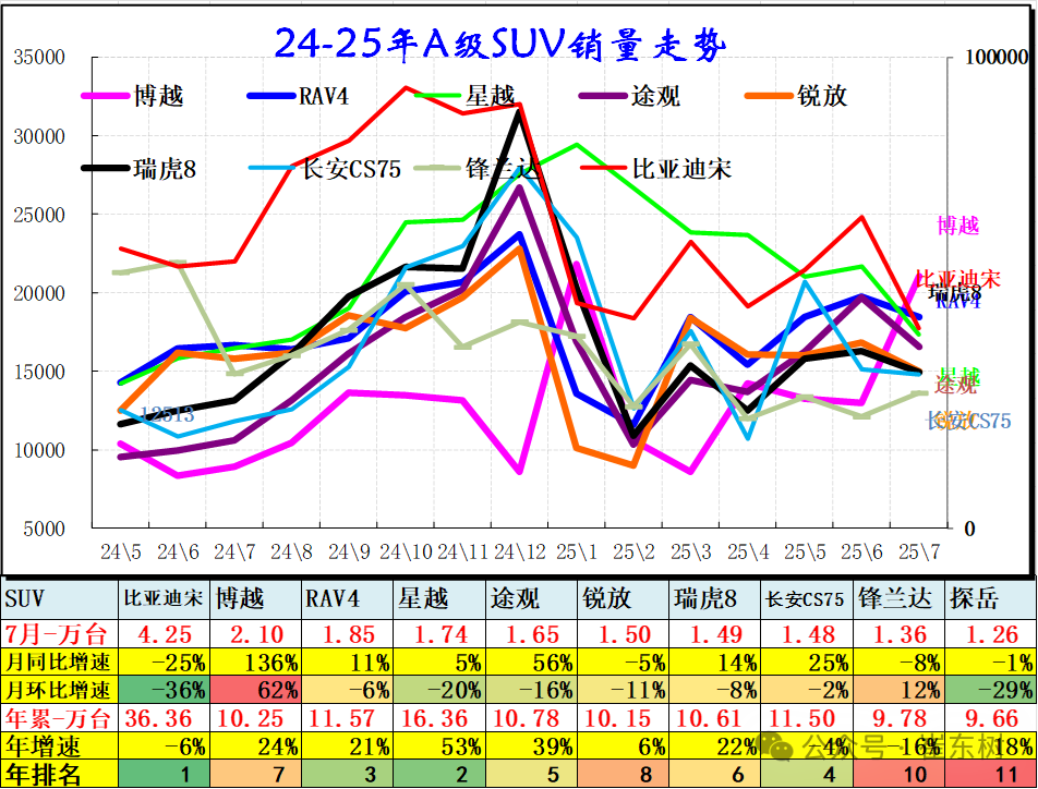 主流SUV市场格局迅速变化,比亚迪和吉利、长安、奇瑞的SUV 表现超强,实现了自主SUV的国内外全面突破。