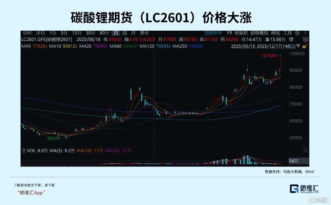 直到2025年10月触及8万元/吨的关键心理价位后,价格才开始企稳并缓慢回升,到12月,锂现货价格已回升至9.5-10万元/吨区间,期货市场远期合约则呈现升水结构,反映市场对远期供需趋紧的预期。