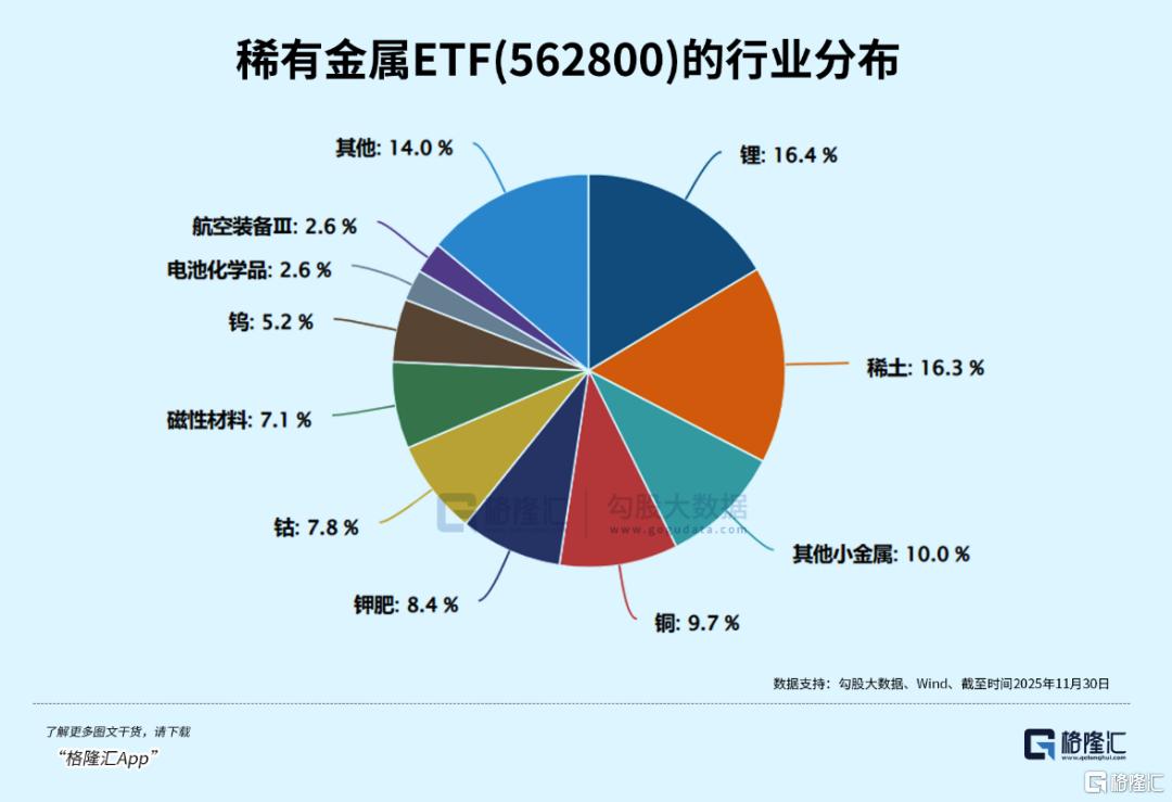 CS稀金属指数的优势是全面覆盖战略金属核心赛道,精准把握产业脉搏,76%有色金属+11%的基础化工,重点覆盖稀土(16.4%)、锂(16.3%)、铜(9.7%)、钴(7.8%)、钨(5.2%)等战略金属,这些金属都是新能源、半导体、军工等国家战略性产业的核心原材料。