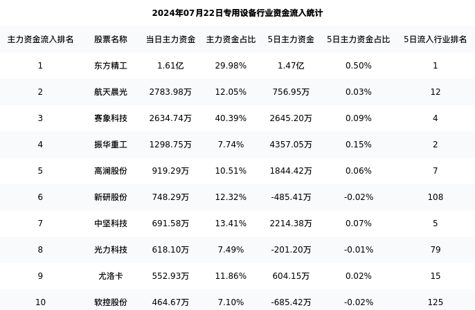 从主力资金流向来看,专用设备行业今日主力资金流入19.43亿,在所有申万二级行业中排名:101/131。