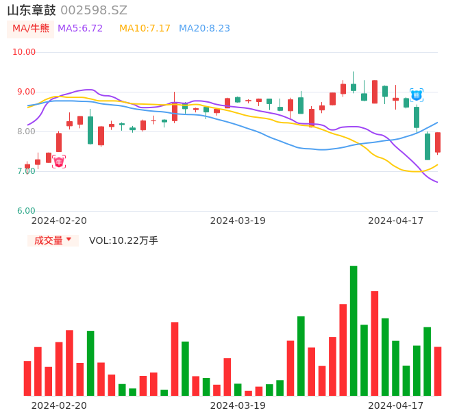 04月17日,山东章鼓收报7.97,股价涨幅9.33%,成交金额7960.62万元,换手率3.64%。