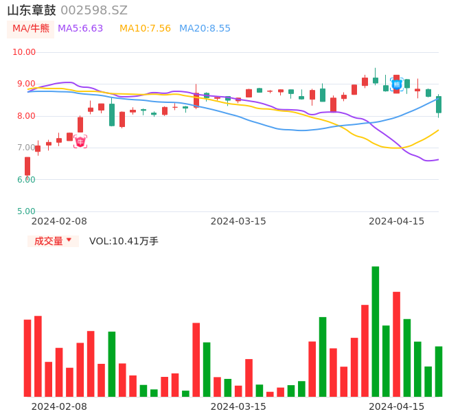 04月15日,山东章鼓收报8.10,股价涨幅-5.92%,成交金额8522.61万元,换手率3.71%。