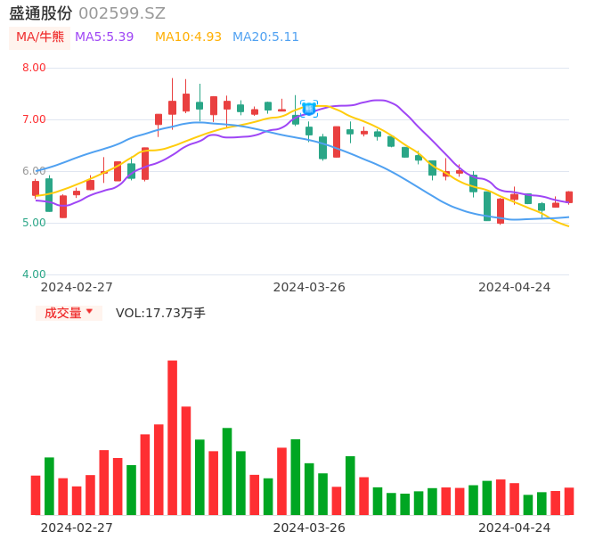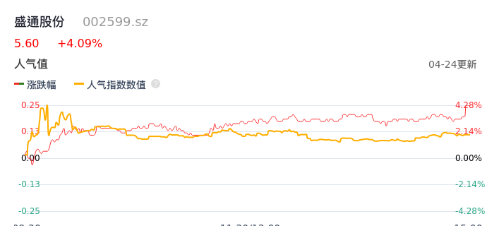 04月24日,盛通股份收报5.60,股价涨幅4.09%,成交金额9785.97万元,换手率4.41%。