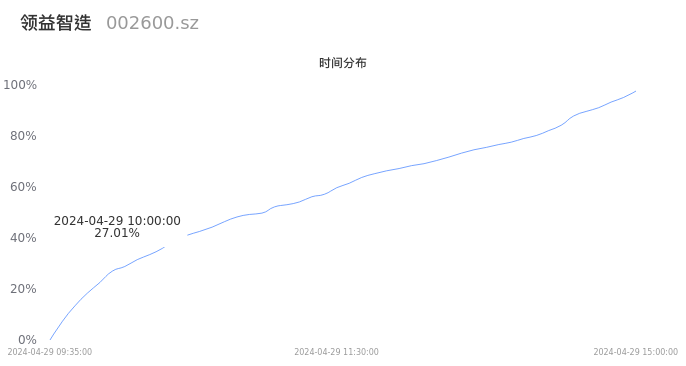 002600领益智造2024年04月29日成交72.62万手,成交金额3.93亿元,相较昨日放量21.26万手,换手率1.05%,成交清淡。