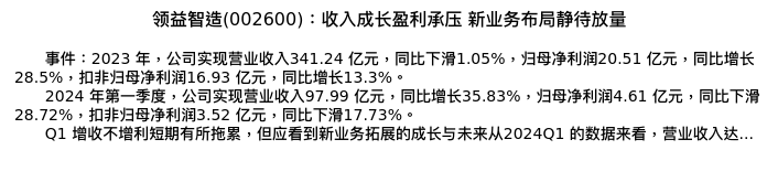 值得注意的是:2024年05月浙商证券的王凌涛/沈钱分析师,首次发布关于领益智造的研究报告,标题为:领益智造(002600):收入成长盈利承压 新业务布局静待放量。