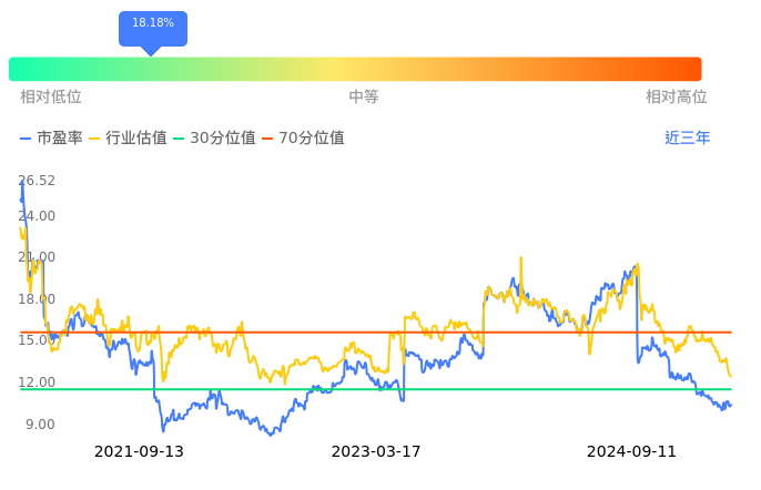 龙佰集团当前市盈率PETTM为10.36,在所属的化学原料中,市盈率PETTM排9名。前5名分别为山东海化PETTM4.64、双环科技PETTM4.70、华昌化工PETTM7.63、苏盐井神PETTM9.37、华谊集团PETTM9.92。从PETTM估值走势数据来看,龙佰集团当前市盈率PETTM为10.36,超过近3年18.18%的历史数据。