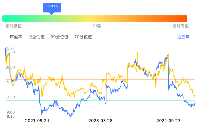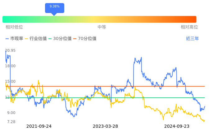 2024年09月23日,龙佰集团上涨2.64%收于17.08,今日成交金额3.34亿。下文将从市盈率PETTM、市净率PB、市现率3个角度去分析公司估值情况。