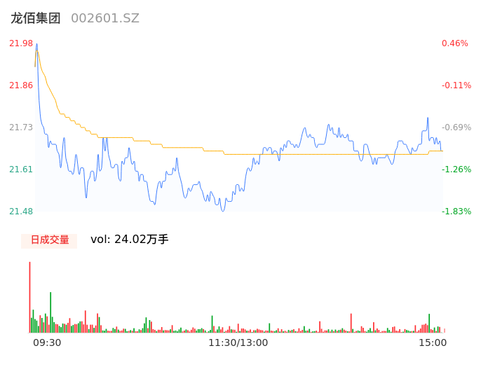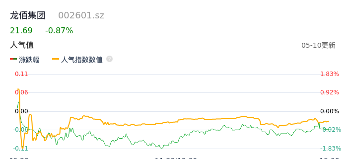 05月10日,龙佰集团收报21.69,股价涨幅-0.87%,成交金额5.20亿元,换手率1.03%。