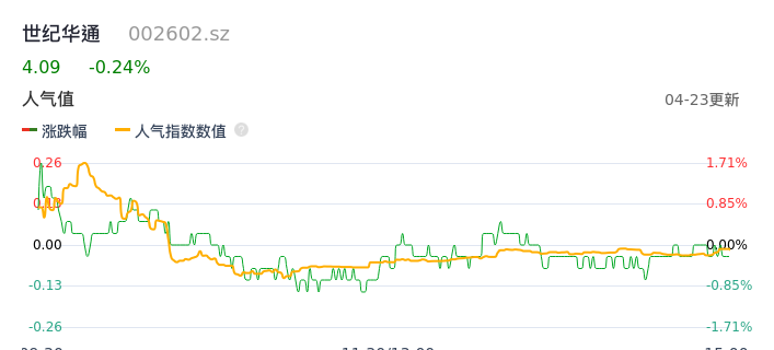 04月23日,世纪华通收报4.09,股价涨幅-0.24%,成交金额2.52亿元,换手率0.89%。