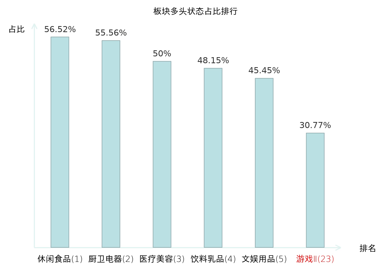 从主力宝信号数据分析,姚记科技所属的游戏Ⅱ板块中共有8只股票处于主力多头状态,主力多头状态占比在全行业中排名第23位,较昨日上升11位。排名的提升表明主力对于该板块的整体看多意愿更强,这为投资者提供了关于市场情绪的重要参考。全市场所有行业板块中,休闲食品板块的主力多头状态占比最高,位居第一;旅游及景区板块的名次提升最快,较昨日上升64位。这些变动揭示了不同行业间主力资金动向的趋势,为投资者提供了潜在投资机会的线索。