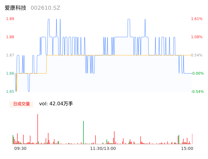04月11日,爱康科技收报1.87,股价涨幅0.54%,成交金额7866.11万元,换手率0.94%。