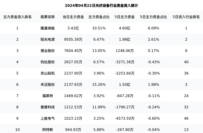 从主力资金流向来看,光伏设备行业今日主力资金流入47.10亿元,在所有申万二级行业中排名:37/131。