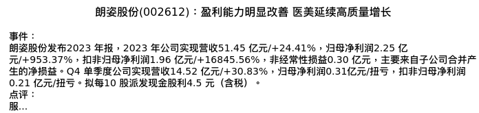 值得注意的是:2024年04月东北证券的李森蔓分析师,首次发布关于朗姿股份的研究报告,标题为:朗姿股份(002612):盈利能力明显改善 医美延续高质量增长。