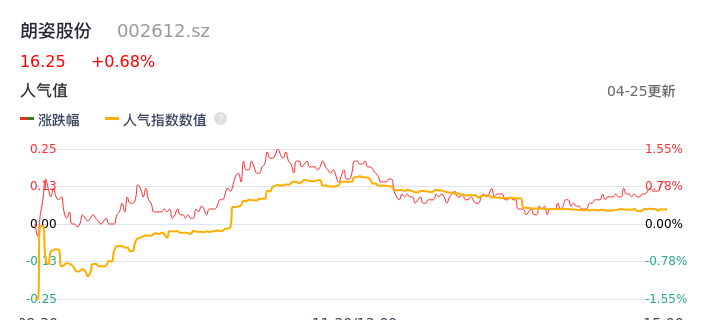04月25日,朗姿股份收报16.25,股价涨幅0.68%,成交金额7860.36万元,换手率1.91%。